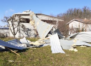 Le raffiche hanno insistito in modo particolare a Caraglio e dintorni, dove non solo ha fatto volare tegole e lamiere, ma ha scoperchiato il capannone di un’azienda agricola, trasportando ad oltre 200 metri di distanza la lana di roccia della copertura.