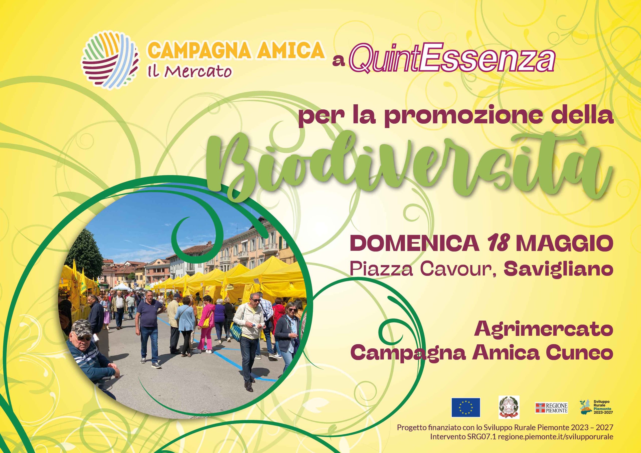 L’associazione Agrimercato Campagna Amica Cuneo partecipa alla 26esima edizione di QuintEssenza, in programma domenica 18 maggio a Savigliano, per portare in città produzioni locali di alta qualità, nel segno della trasparenza e della sostenibilità della filiera agricola a Km zero.